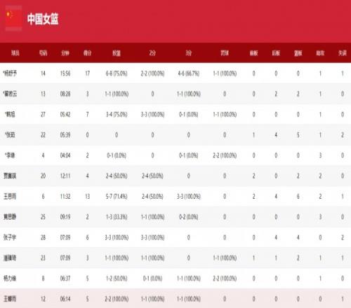 全民皆兵!中国女篮半场12人出场11人有得分进账杨舒予17分最高